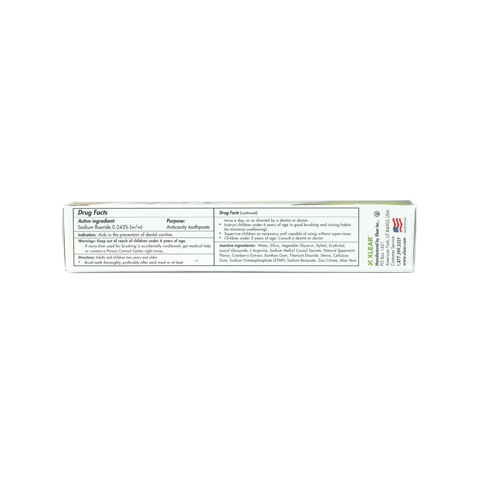 Inactive Ingredients: Water, Silica, Vegetable Glycerin, Xylitol, Erythritol, Lauryl Glucoside, L-Arginine, Sodium Methyl Cocoyl Taurate, Natural Spearmint Flavor, Cranberry Extract, Xanthan Gum, Titanium Dioxide, Stevia, Cellulose Gum, Sodium Trimetaphosphate (STMP), Sodium Benzoate, Zinc Citrate, Aloe Vera